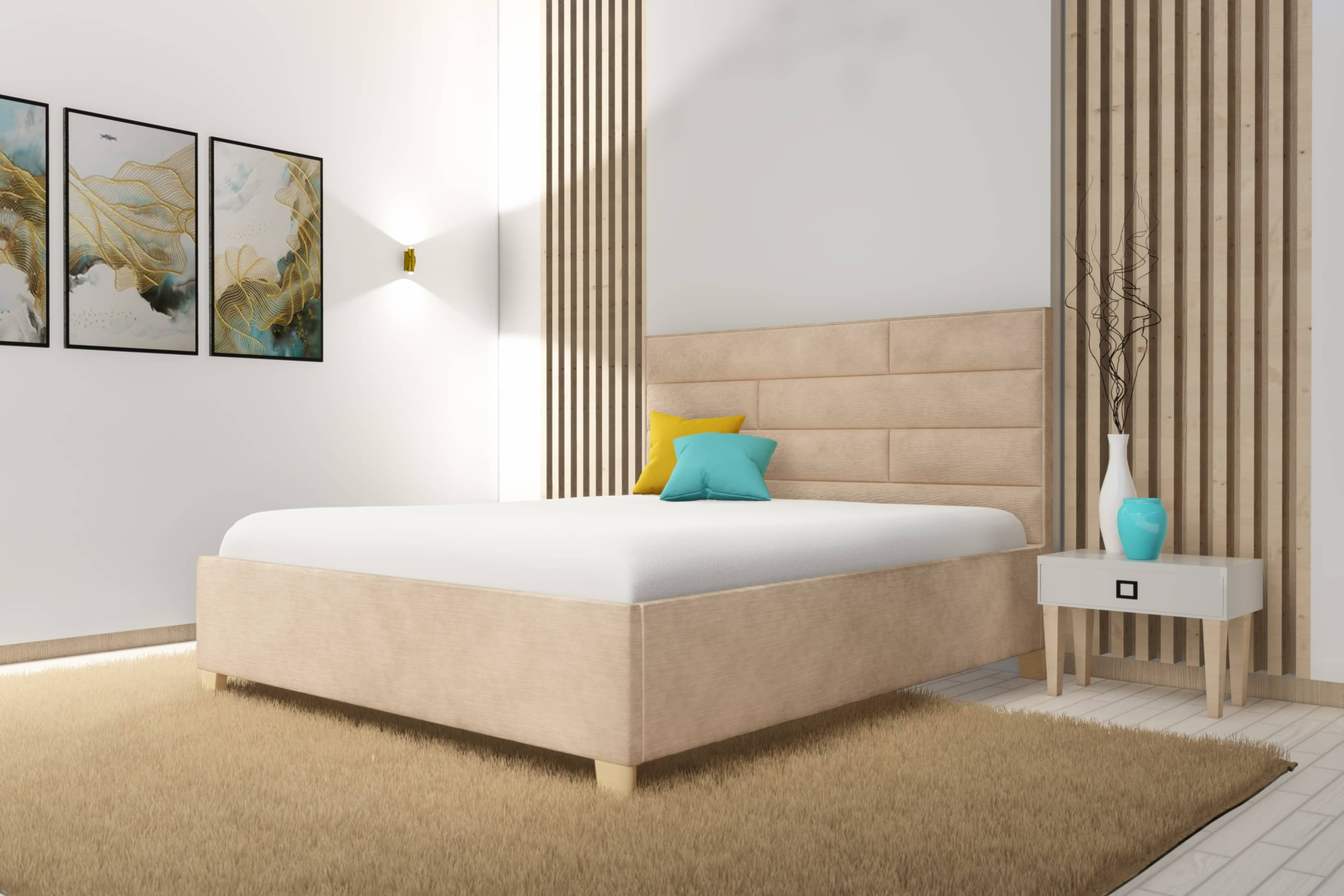 Devízou našich čalúnených postelí je aj výber troch výškových variácií zadných čiel, výber farieb masívnych nožičiek a možnosť dokúpenia úložného priestoru, ktorý je ľahko domontovateľný k posteli.