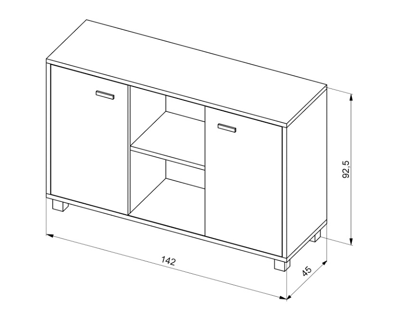 • 1 x dvierka v ľavej časti, polica v strede, 1 x dvierka v pravej časti