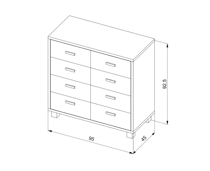Komoda SK-8Z ( Stredná Komoda - 8x Zásuvka ) vyrobená z masívneho bukového dreva je garanciou najvyššej kvality.