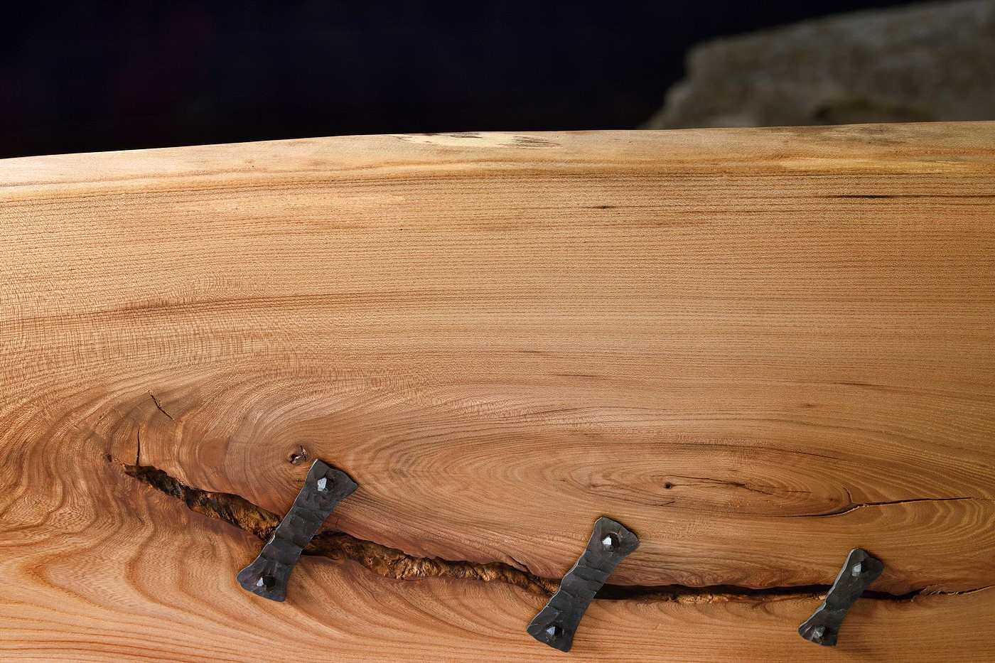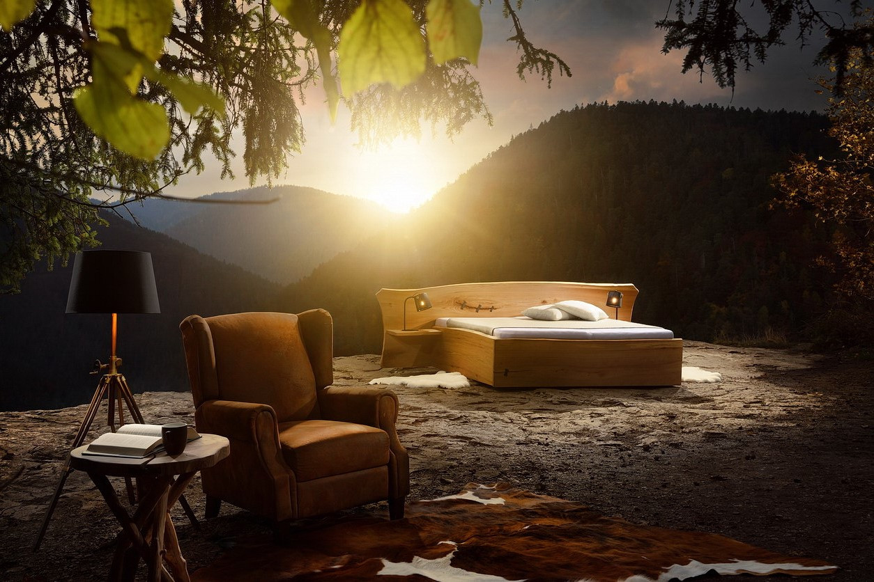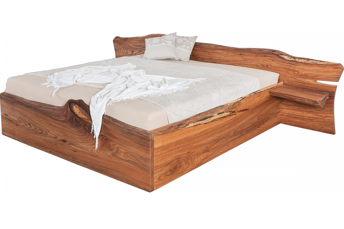 Manželská posteľ ELBA vyniká jedinenčým dizajnom z brestového kartáčového dreva a veľkorysým úložným priestorom. Posteľ z masívu s hrúbkou 40 mm dodávame aj s nočnými stolíkmi a roštami.