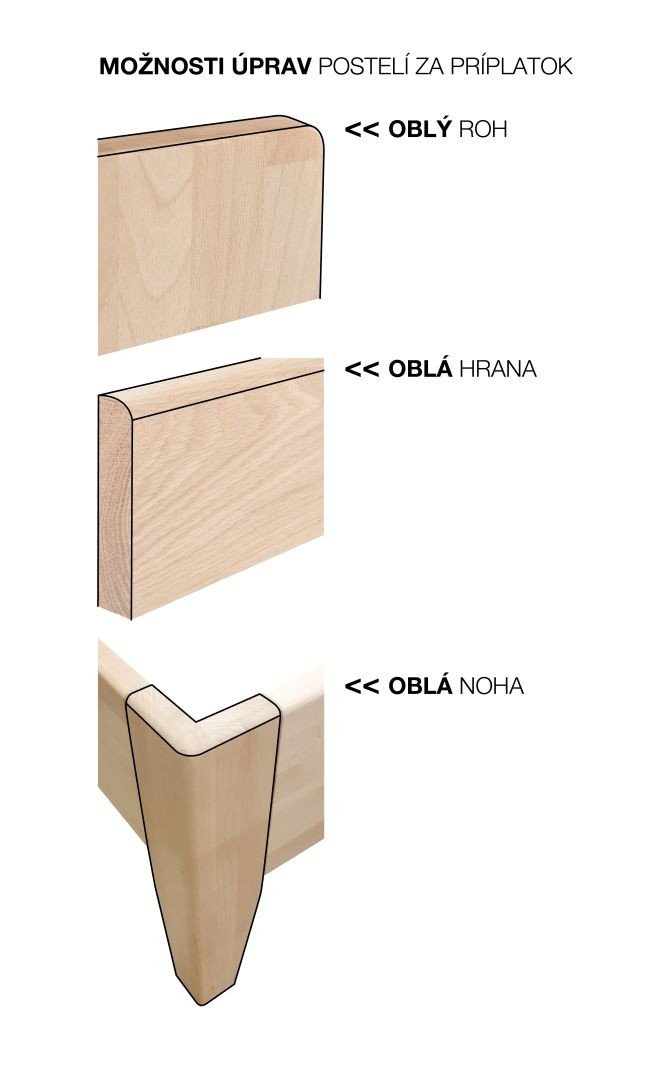 Možností úprav postelí za príplatok → Možné doplnkové vyhotovenia