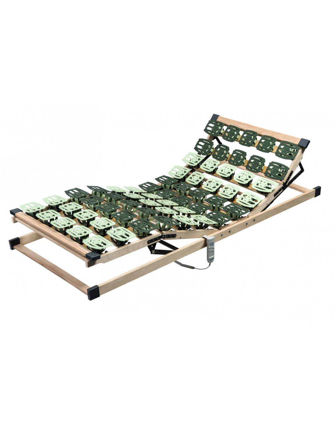 Exkluzívny elektrický lamelový rošt LUX MOBIL je polohovateľný segmentový rošt s motorovým polohovaním časti pod hlavou a časti pod nohami so 60 aktívnymi segmentmi rôznej tvrdosti rozložených pre optimálnu polohu pri spaní do 6 zón tvrdosti. Segmentový rošt je dostatočne pevný, aby sa na ňom matrac neprehýbal pričom zaručuje dokonale kopírovanie krivky tela, dokáže dokonale rozložiť váhu a individuálne reagovať na zaťaženie v každom bode povrchu matraca. Prídavná lišta na okrajoch roštu rovnomerne podopiera matrac aj na okrajoch pri nohách a v hornej časti matraca. Zamedzuje deformácii okrajov matraca a predlžuje jeho životnosť. Drevený rám roštu je opatrený fóliou, a tak do roštu nepreniká vlhkosť a nevytvára sa prostredie pre výskyt baktérií a plesní. Segmentový rošt zaručuje veľmi dobrú priedušnosť. Polohovateľný posteľný rošt ponúka nosnosť až 130 kg a je vhodný pre kvalitné latexové a penové matrace. Výška roštu je 11 cm.