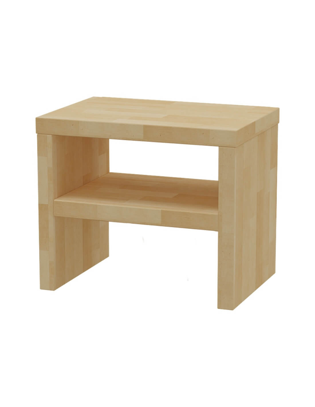 Nočný stolík TNS 1 z masívneho dreva v originálnom praktickom dizajne. Jednoduchý nočný stolík s policou.
