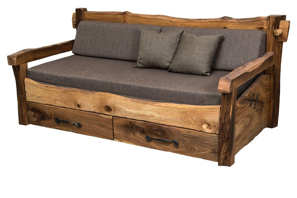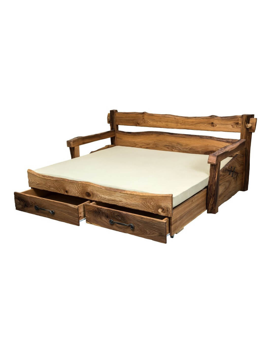 Masívna posteľ CORONA vysúvacia z brestového dreva 3 v 1 - sedačka, jednolôžko, dvojlôžko. Rozkladacia posteľ vyniká jedinečným hranolovým dizajnom s výraznou kresbou štruktúry dreva.