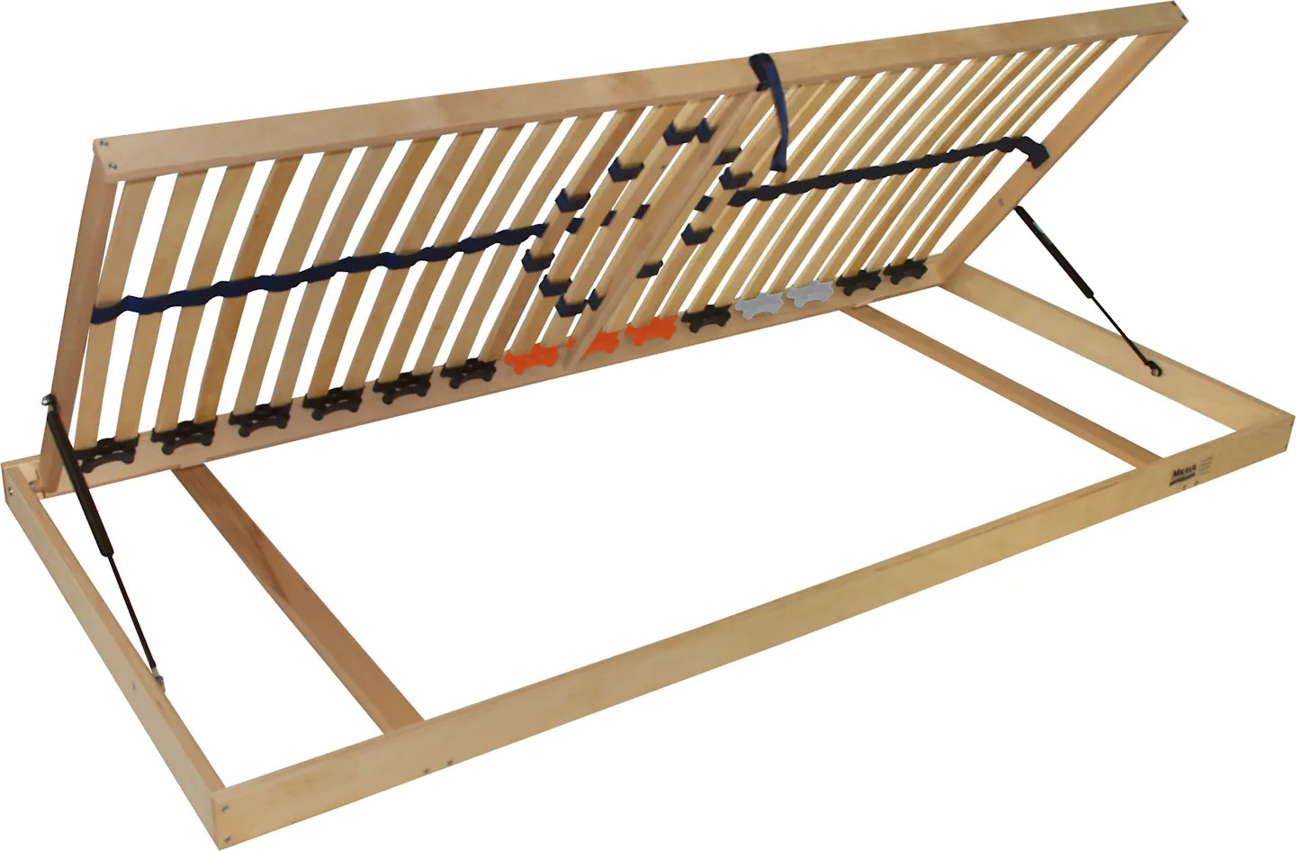 Kvalitný lamelový nepolohovateľný rošt s bočným piestovým výklopom, 28 lamelami, spevňujúcim stredovým popruhom a nastavením tvrdosti 6 lamiel v strede roštu.